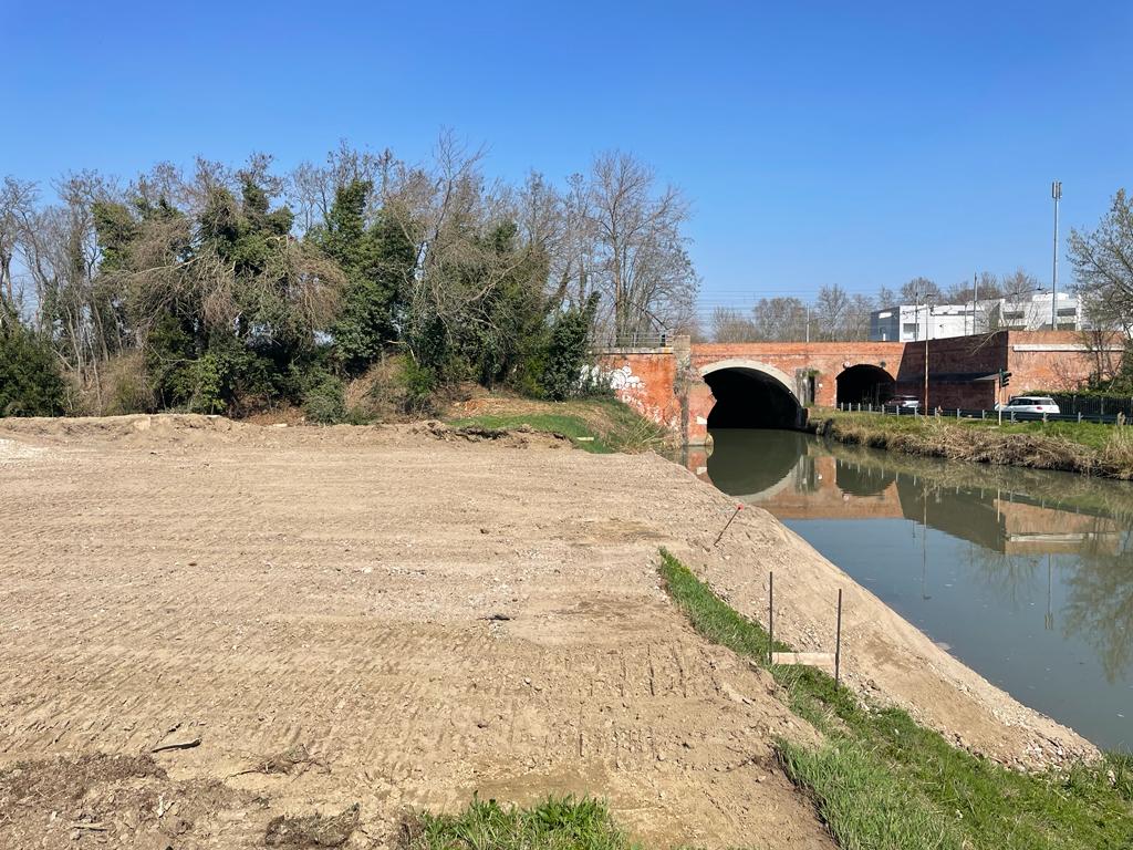 Realizzazione di due piazzole per il posizionamento delle gru per il nuovo ponte sul canale Bussè di Legnago (VR). La nuova viabilità collegherà più rapidamente il territorio con l'ospedale Mater salutis, riducendo così il flusso di veicoli in centro storico.